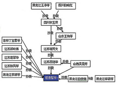 ——黑龍江齊齊哈爾市泰來(lái)縣婦幼保健院的王凈等發(fā)表在《當(dāng)代醫(yī)學(xué)》2009年7月第15卷第19期的《無(wú)痛人工流產(chǎn)術(shù)后宮腔粘連35例分析》一文和四川省宣漢縣雙河中心衛(wèi)生院白曉紅發(fā)表在《中國(guó)醫(yī)藥指南》2008年9月第6卷第18期《無(wú)痛人工流產(chǎn)術(shù)后子宮粘連臨床分析》一文,都涉嫌抄襲四川省中西醫(yī)結(jié)合醫(yī)院宋玉萍發(fā)表在《中華現(xiàn)代婦產(chǎn)科學(xué)雜志》2006年第3卷第7期的《無(wú)痛人工流產(chǎn)術(shù)后宮腔粘連40例分析》一文。“中大學(xué)子”認(rèn)為,“除了一些數(shù)據(jù)外,王凈等幾乎是一字不漏地抄襲宋文。而白曉紅這篇文章,只是去掉了宋文的前一段和后一段,整個(gè)文章與宋文中間部分,幾乎一字不差。”