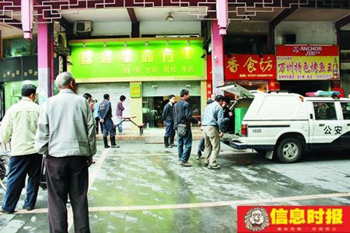 昨日下午3點,記者來到事發(fā)地點,經(jīng)附近居民指引,發(fā)現(xiàn)出事店鋪名為“錦標(biāo)號商行”,招牌上標(biāo)明經(jīng)營內(nèi)容是“煙酒、古玩、字畫”,店鋪大門緊閉,門前碎玻璃散落一地,還有一攤血跡。該店旁邊則是兩家小食店。