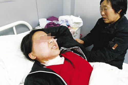 昨日下午,記者在南京武警醫(yī)院找到了正在接受治療的妹妹小萍,雙眼紅腫的小萍,脖子上有道傷痕,臉上還有不少塊青淤傷,臉上不時閃過驚恐。18歲的小萍在南京一所中學(xué)讀高二,不意卻在一夜之間,失去了姐姐,自己也經(jīng)歷生與死的考驗。