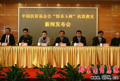 本港訊 (梅子 吳如雄 攝影報道)18日下午中國扶貧基金會“情系玉樹”抗震救災的新聞發布會在北京召開,軍旅歌唱家金波作為中國扶貧基金會愛心使者出席了現場,并宣讀了抗震宣言。