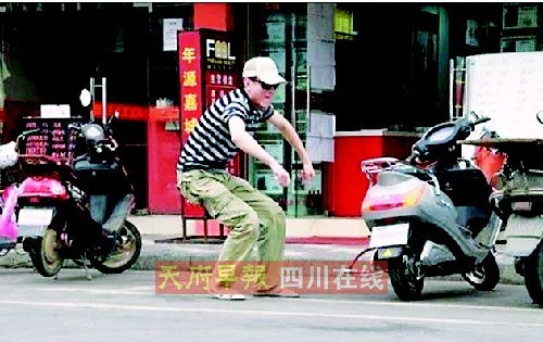5月4日,網(wǎng)友“wo無視一切”(以下簡稱“wo”)和朋友在旅游回來的路上發(fā)現(xiàn)了一個20多歲的男子,戴著一個超大的墨鏡、一頂米黃色的帽子、穿著一雙廉價的拖鞋。這一身“掩人耳目”的裝扮引起了“wo”的注意,于是“wo”決定用手機偷拍下男子的行為,看看他到底想做什么。