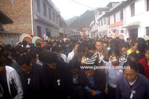 記者從該縣宣傳部門提供的一個影像資料上看到,4月21日是為李天平舉行追悼會的日子,全村男女老少都自發趕來了,一千多人的送行隊伍排了幾百米。