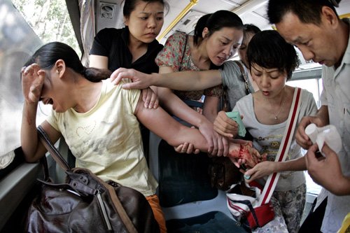 女子公交車上割腕自殺 眾乘客出手施救(圖)