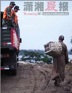 救人于濁浪洪滔,一刻也不得歇息的解放軍及武警官兵們,忙得甚至顧不得吃飯喝水。義工們來了,他們送來一筐筐包子饅頭,送來一箱箱純凈水。
