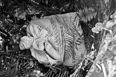 糞坑編織袋 露出一只腳