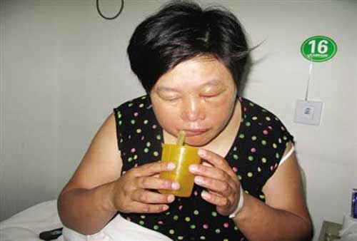 衛(wèi)小定的臉部仍然浮腫,只能吸食流質