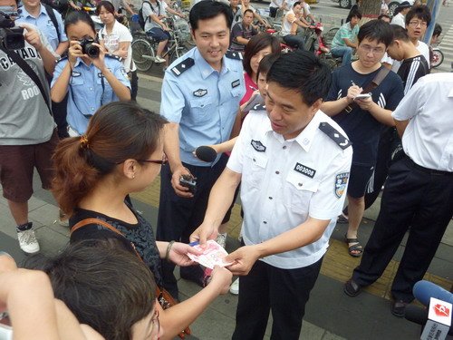 交警稱重獎行人做法新穎