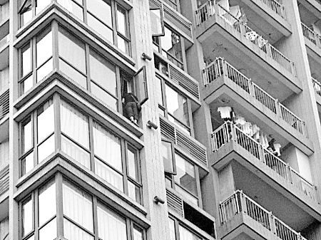 討薪女子站13樓窗外欲跳樓 圍觀者竟起哄(圖)