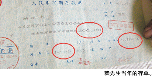 中新網報道 17年前,賴先生在辦理信用卡時,按規定往賬號內存入200元,作為押金以防漏繳年費。兩年前,搬家收拾家當,他在箱底又找到了這張定期存款單,可他拿著存單跑了多趟銀行,至今沒一個答復。銀行稱,電腦系統升級查無記錄,需要調出原始憑證。