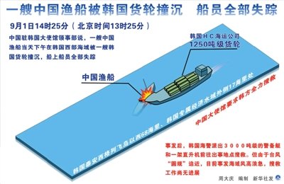 一艘中國(guó)漁船被韓國(guó)貨輪撞沉 船員全部失蹤