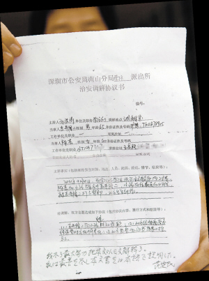深圳新聞網(wǎng)訊 被打者翔翔(化名)的家人用手指著當(dāng)天挨打的位置。前天晚上,南山區(qū)一大型超市里,一日籍男子因被智障少年翔翔無意中碰到而動手打人,致使翔翔背上立現(xiàn)5個紅紅的手指印。翔翔父母發(fā)現(xiàn)后十分氣憤,嚴(yán)正要求道歉。在警方的調(diào)解下,最終日籍男子認錯并以日本人的方式下跪道歉。