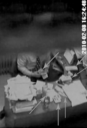 除去文字材料外,舉報(bào)人還寄來了一張光盤,其中包含8段視頻。根據(jù)文字說明,所有視頻都拍自陳某的辦公室。在名為《拿錢4》的視頻中,右上角顯示時(shí)間為2010年2月11日13時(shí)42分,畫面中一名女子在辦公室內(nèi)直接拿出一疊百元現(xiàn)金給醫(yī)生,醫(yī)生拿著錢和女子一直在說話。