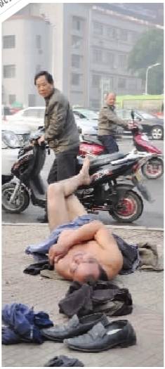 一名“內(nèi)褲男”躺在大街上 熱心市民相救(組圖)