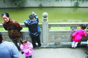 一些人在孩子落水的地方圍觀