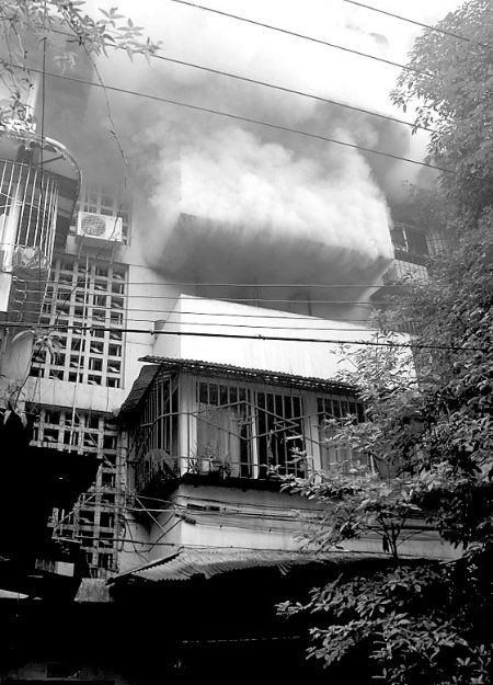 火災發(fā)生在早上7時40分左右。婆婆一大早就出去了,家中陽臺上燃起熊熊大火,濃煙彌漫著整個大院,不少居民被驚醒,紛紛用濕毛巾捂了口鼻跑出來,一位鄰居大爺因逃生時吸了濃煙被送入醫(yī)院。