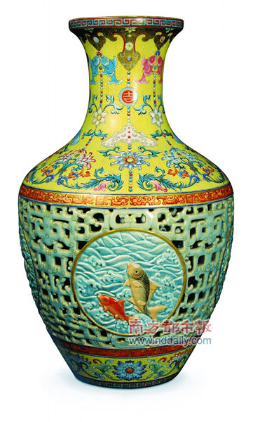 被拍賣(mài)出天價(jià)的清乾隆粉彩鏤空瓷瓶
