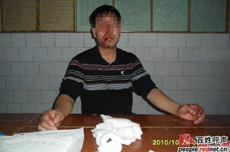 “領導們感到失了面子,竟然將洞口縣中天賓館餐飲部吧臺、花瓶、收銀機砸毀,更加無恥的是將懷孕少婦王某拳打腳踢,將前來勸阻的廖某及其父親二人打得頭破血流。廖某及其父親和懷孕少婦王某在洞口縣中醫院住院治療。”