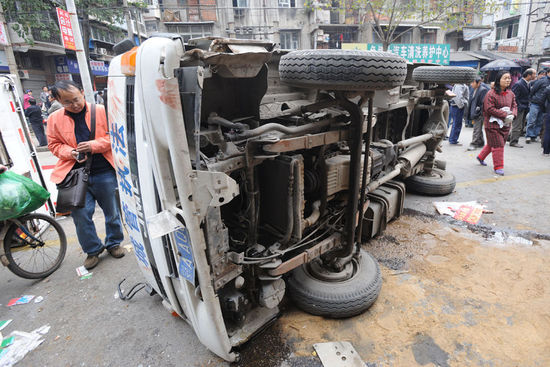 武漢商戶(hù)與城管沖突推翻執(zhí)法車(chē) 事態(tài)平息(圖)