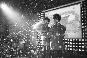 當天晚上10點45分,君臨酒吧燈火通明。在來自浙江、安徽、上海和山東310名圈內人的注視下,張真身著嶄新西裝,胸前戴著一朵紅花,“新娘”英梓皮膚白皙,橘紅色襯衫外套著一件灰色的小西裝,兩人手挽手緩緩地走到酒吧前端的舞臺上。