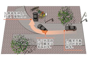 這是一個轉彎路段,四車道變為兩車道。戴某自以為這奔馳車性能好,就沒有踩急剎,而只是向左甩了一盤子。沒想到車速太快,車子徑直沖上人行道,導致事故發生。