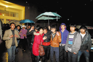 圖為小磊的母親在親屬攙扶下離開楚雄市殯儀館