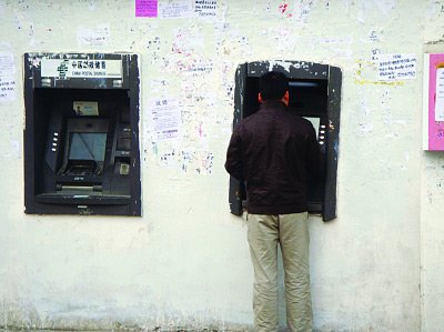 最簡(jiǎn)陋ATM機(jī)前,依舊有膽大心細(xì)的取款者