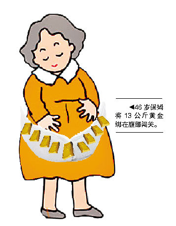 香港保姆腰纏13公斤黃金在深圳闖關(guān) 或被判無(wú)期