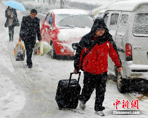 據中新網九江12月15日電(劉占昆 胡國林 杜勒彪)12月15日,江西大部分地區迎來今年入冬以來首場大雪。在九江火車站,不少旅客冒著鵝毛大雪趕路乘車,鐵路工人也頂風冒雪,檢查車輛設備情況,以確保京九鐵路、昌九高鐵安全暢通和旅客人身安全。 江西省氣象臺在15日9時發布了近年來罕見的暴雪黃色預警信號,贛北贛中出現較明顯的降雪天氣,部分地區降雪量超過6毫米。 |