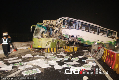 杭州機場高速公路大巴相撞 致6人死亡(圖)
