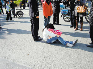 據目擊者趙先生介紹,下午1時許,女子抱著嬰兒走到馬路中央坐下,“看樣子是想自殺,我們好多人都上前勸說,但她死活不肯離去。”趙先生說,女子聲稱懷中的嬰兒是自己剛剛生下的女兒,尚未滿月,孩子的父親及奶奶重男輕女,對此十分不滿意。由于不能忍受家人的冷言冷語,女子決定與懷中的孩子一死了之。