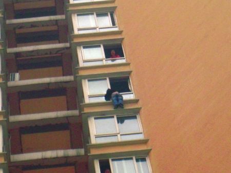男子15樓外抓住墜樓妻子并咬住衣服40分鐘(圖)