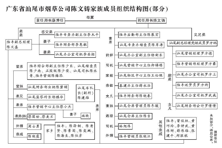 廣東汕尾市煙草公司陳文鑄家族成員組織結構圖(部分)