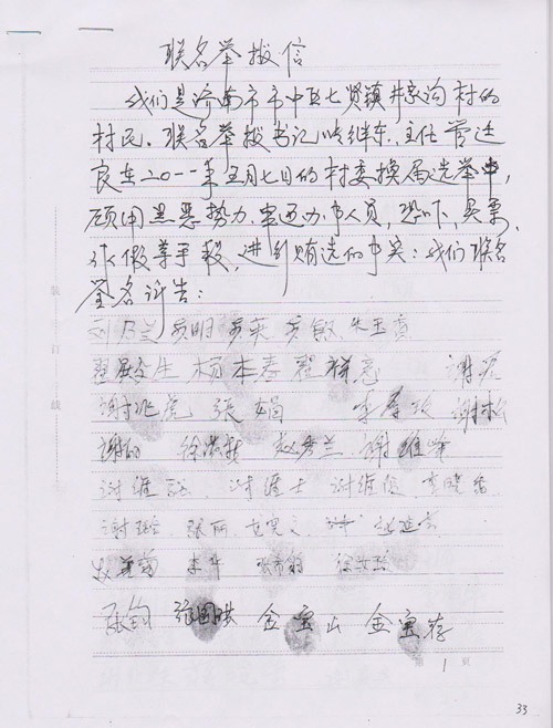 2011年是全國村級組織集中換屆之年。用鐵的紀律確保換屆風清氣正,保證村級組織換屆選舉的公正性和嚴肅 性,成為各方關注期待的焦點。然而,在新農(nóng)村建設投入加大、村集體經(jīng)濟快速壯大、征地拆遷中村組織權力擴大的發(fā)展背景下,巨大利益的驅使讓村級組織換屆選舉愈發(fā)敏感,公平嚴肅受到前所未有的挑戰(zhàn),村官“賄選”成了不是秘密的秘密。近日,接到來自濟南市市中區(qū)井家溝村村民關于“黑金”“賄選”的聯(lián)名上訪信。以井家溝村為標本,揭開“賄選”內(nèi)幕實質,意義非同小可。