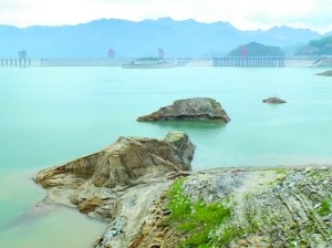 23日,三峽水庫壩前水位降至152.95米,庫底山巖露出水面。