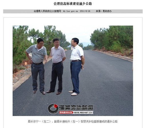 紅網長沙6月27日訊(瀟湘晨報滾動新聞記者 耿紅仁 實習生 武文超) 26日晚上,有網友在天涯社區發帖,稱在四川會理縣政府網站上發現一件“令人吐血”的事:縣領導視察通鄉公路的新聞中,所配圖片疑為電腦軟件合成,領導被PS“站”在公路上。