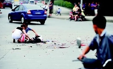 昨日中午,悲慘一幕發(fā)生在十陵公交車站旁農(nóng)平路路口:兩名騎著摩托車的交通勸導(dǎo)員在上班途中,被運(yùn)渣車掛倒后卷入車輪下,不幸喪命。趕來的家屬看到這一幕后,悲痛不已,他們捶打著肇事司機(jī),讓他跪著為逝去的親人燒紙,表達(dá)自己心中的憤怒和痛苦。