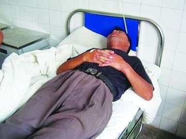 受傷的老人躺在醫(yī)院床上。