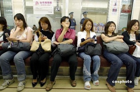 資料圖:鑒于晚上等地鐵時(shí)常發(fā)生針對(duì)女性的性騷擾或性犯罪案件,日本東京2003年在地鐵線路上開(kāi)通了男士免進(jìn)的女性專用列車(chē),同類長(zhǎng)途汽車(chē)也將開(kāi)設(shè)女士專車(chē),以保證女性夜間出行安全。