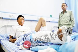 昨日,在重慶紅樓醫院手足外科病房,江津區賈嗣鎮48歲的楊昌禮望著被厚厚紗布裹著右腿,充滿恐懼和不安。如果右腿功能殘損,他將來的生活將會發生巨大變化。