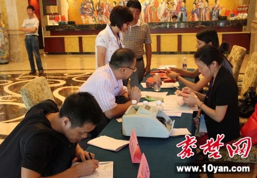 圖為籌委會(huì)工作人員正在接受與會(huì)代表咨詢