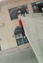 男子掛在天橋上