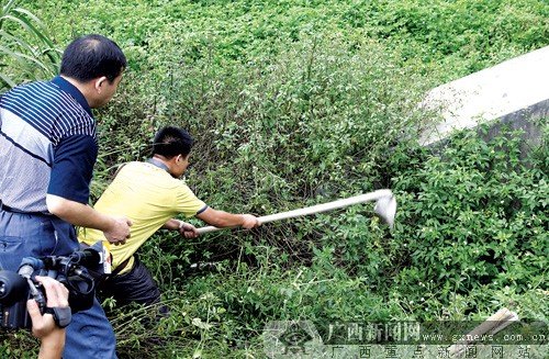 7月14日中午12時,在南寧市安吉大道西津村附近盧仙嶺路路邊,一名施工工人正在挖水溝。挖著挖著,工人突然發(fā)現(xiàn)溝里出現(xiàn)了一個鼓鼓的袋子。隨著他持鐵鏟捅開袋子,里面露出一顆骷髏頭。工人慌忙向警方報案。