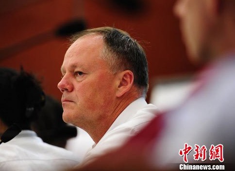 資料圖:8月24日上午,康菲石油中國有限公司總裁司徒瑞(Georg Storaker)在北京的發(fā)布會上表示,該公司會對渤海溢油事件承擔(dān)相應(yīng)的責(zé)任。中新社發(fā) 侯宇 攝