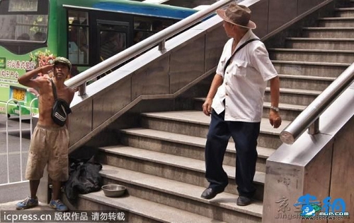 據貴網消息 2011年9月6日,遵義路有個很有意思的乞討者,敬禮乞討,乞討成功后都會說一句“Thank you very much”?芍^是“不走尋常路”。 記者隨后在遵義路國鼎家電門口的人行天橋處見到了這個乞討者。