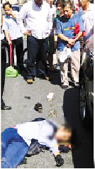 第一條微博是在當天下午2點半發出,他用“震驚!痛恨!悲傷!”三個濃烈色彩的詞打頭,詳述了事發經過:“我路經東安路,突然看見馬路中央一路過來一男一女倆收費員一前一后追堵一輛奧迪車,女的在前撐住車頭不讓走,男的在左邊想拉車停下。奧迪車眼見擺脫不了他倆,出乎意料地猛然加速沖撞了過去,可憐女收費員瞬間被軋入了車底,卡在右后輪下,據說沒了心跳。”在這段文字下面,兩張受害人倒在血泊中的照片觸目驚心。