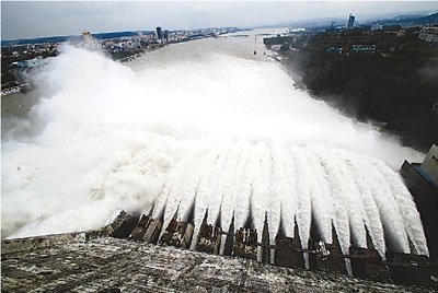 丹江口大壩開閘泄洪,迎戰今年最大漢江洪峰。陳華平攝