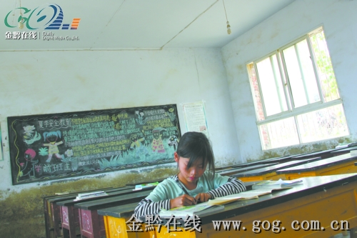 在他家10平方米左右的堂屋里,是二年級的教室,33名學生在狹小的空間里做作業。