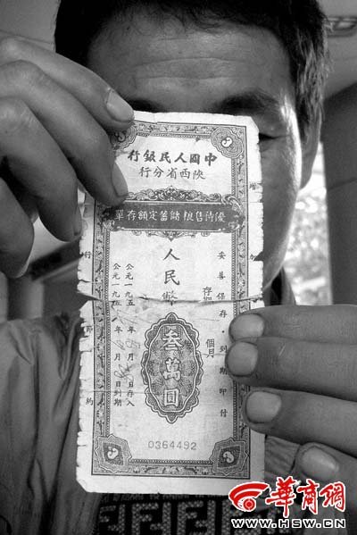 關(guān)師傅說,幾年前,朋友曾委托別人拿著存單去中國人民銀行咸陽分行問過,對方說1954年,還沒有他們那個單位呢,說讓找工商銀行,朋友就再沒管過。