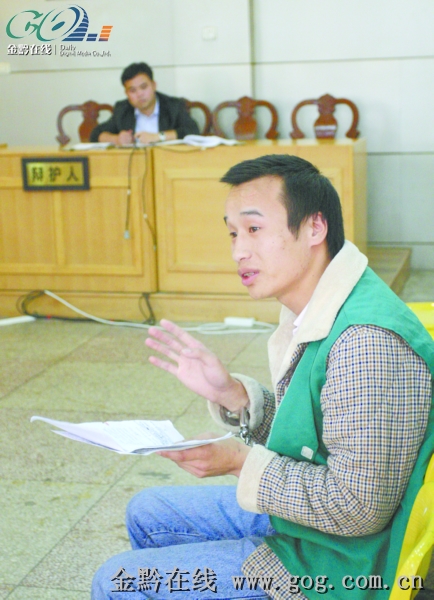 昨日上午,曾經(jīng)盜竊被判過刑的被告李海江(六盤水人,1986年生)在法警的押解下,坐到被告席上。庭審中,李海江對(duì)公訴機(jī)關(guān)的指控不持異議,但是談到殺傷致胡崗死亡的細(xì)節(jié),被告堅(jiān)稱,作案的兇器不是自己的,是胡崗用刀來殺他,他是“奪刀自衛(wèi)”。