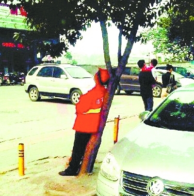 "靠樹打盹"環(huán)衛(wèi)工引關注 網友稱心酸感動(圖)